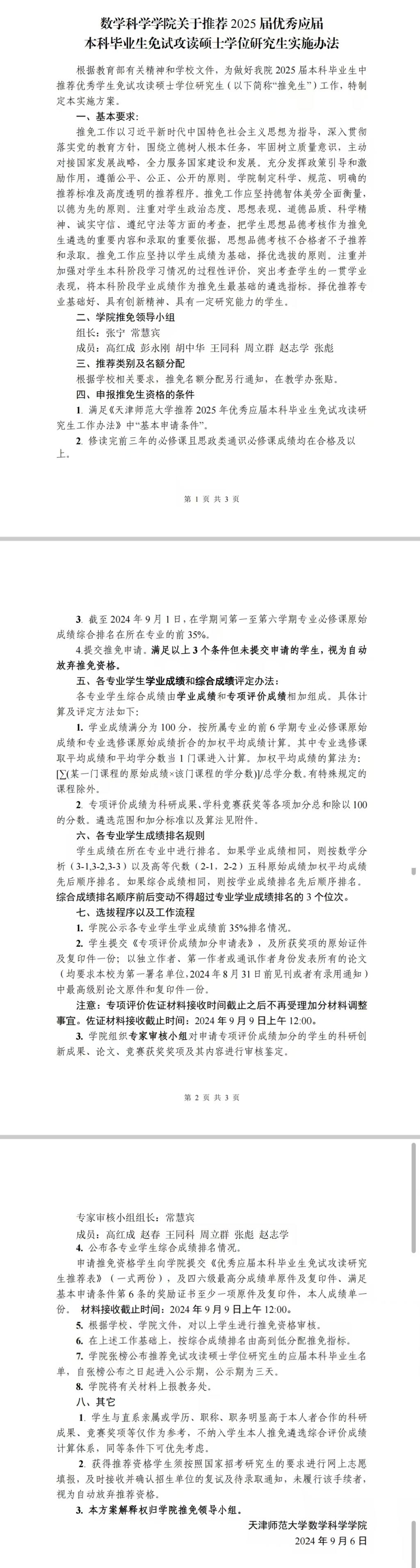 数学公司2025届优秀本科毕业生免试攻读硕士学位研究生工作实施办法