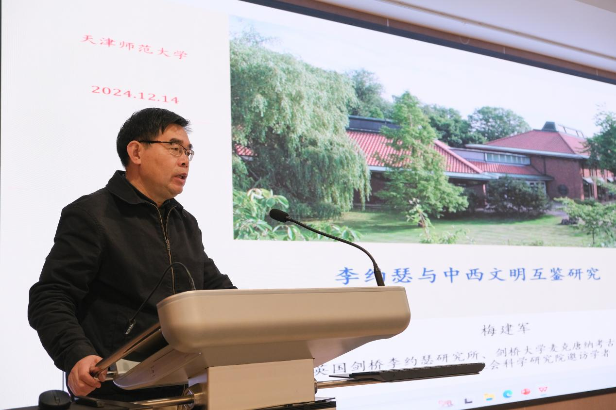 12月14日上午,公司“求是讲坛”第100场报告在京津冀协同创新中心B座小报告厅举行。剑桥李约瑟研究所所长、剑桥大学麦克唐纳考古研究所研究员、北京大学人文与社会科学研究院邀访学者梅建军研究员作题为《李约瑟与中西文明互鉴研究》的学术报告。公司党委副书记陈玳玮主持报告,公司科学技术史与文化遗产研究院、伟德国际victor1946、欧洲文明研究院、古籍保护研究院、历史文化公司、国际教育交流公司、教育学部、心理学部、马克思主义公司等单位和内蒙古师范大学师生代表220余人参加。