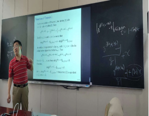 本次报告中,孙智伟教授介绍了关于赋权的Graham-Pollak定理的最新结果,即如何计算赋权的树的距离矩阵的行列式。报告最后,孙智伟教授对师生提出的问题进行解答,并与与会教师合影留念。