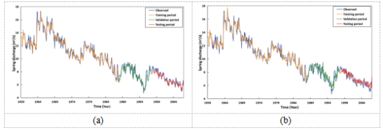 图2 泉水流量的拟合图:ChebNet(a)和GCN(b)