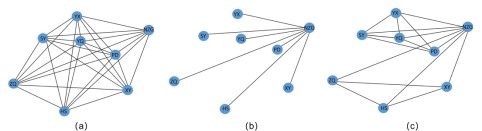 图1 三种图结构:完全图(a)、信息流图(b)和地下水流场图(c)