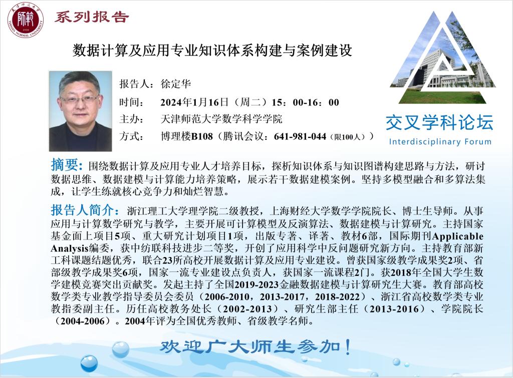 【预告】学术报告(2024-2)1月16日—数据计算及应用专业知识体系构建与案例建设