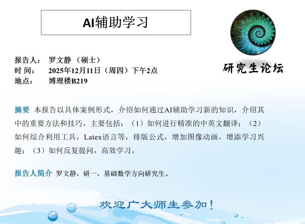 【预告】学术报告(2025-56)12月11日--AI辅助学习