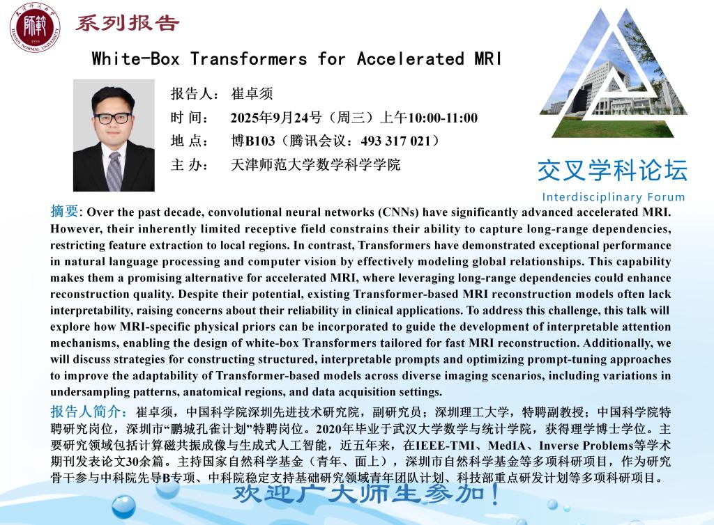 【预告】学术报告(2025-17)9月24日-White-Box Transformers for Accelerated MRI